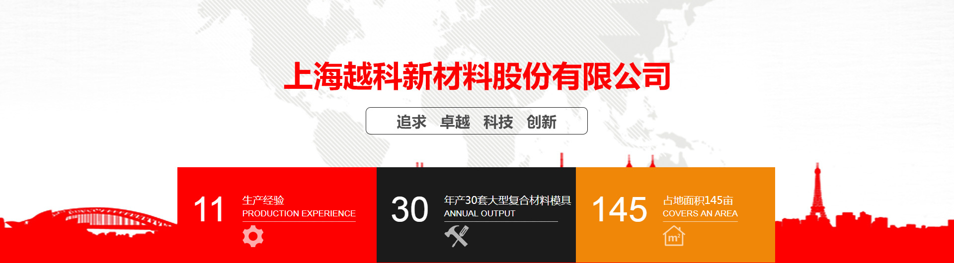 上海越科新材料股份有限公司成立于2006年,是結構復合材料技術提供商和產品制造商,專注于高性能要求和大型的結構性復合材料件的整體解決方案提供,模具設計制造,整體流水線總包,原材料供應。