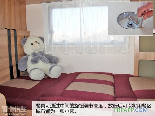 在這款車改裝的過程中,出現了最早的升頂式結構,通過升高主結構之外的車頂鋼板來拓展車內空間。這種設計也奠定了今天面包車式房車(B級自行車房車)的基礎