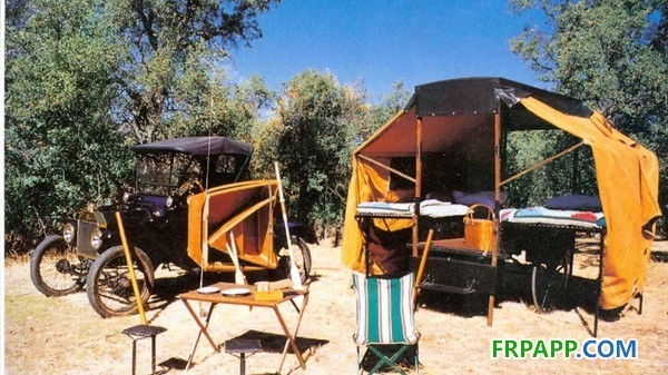 在房車旅行開始流行以后,最早的房車營地開始出現,為房車提供基本的補給,并給志趣相投的旅行者提供一個娛樂社交的場所。從下圖中可以看出,雖然自行式房車已經出現,但由于其高昂的價格,即使是相對富裕的早期的房車旅行者,一般使用的也還是帳篷式的拖車。