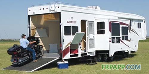 當然還有一些拖掛房車變得更大,尾部還有專門可以裝摩托和高爾夫車的車庫: