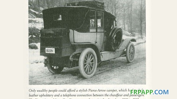 1910年,第一輛可以自行移動的房車出現了。雖然那時即使在美國,城市以外也很少有鋪裝道路,加油站也極少,但卻已經有人開始探索住在汽車上的可能。最早的房車,大概是如下這個樣子,價格昂貴,但只有很有限的生活空間。圖中所示為Pierce Arrow 公司生產的Touring Laundau