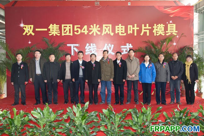 2013年11月29日,雙一集團54米風電葉片模具下線剪彩儀式在雙一集團武城分公司舉行。中國復合材料行業(yè)協(xié)會、中國農(nóng)業(yè)機械工業(yè)協(xié)會風能設備分會、中國復合材料學會、德州空調復合材料行業(yè)協(xié)會、德市經(jīng)信委、市科技局、武城縣政府等相關領導及行業(yè)嘉賓共70余人在雙一集團王慶華董事長、姚建美總經(jīng)理的陪同下參加了本次下線儀式。
