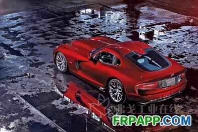 在2013 SRT Viper跑車上,超過50%的汽車蒙皮都使用了復(fù)合材料,包括:由環(huán)氧樹脂基的碳纖維預(yù)浸料 (包括由Umeco公司/氰特工業(yè)公司提供的表面可見編織紋理的織物以及由東麗碳纖維美國公司提供的單向結(jié)構(gòu)層合材料) 成型的巨型蛤殼式引擎蓋/擋泥板模塊和結(jié)構(gòu)車頂,該車頂滿足了美國聯(lián)邦政府的車頂抗壓強度要求,以及由Plasan碳纖維復(fù)合材料公司采用真空袋/熱壓罐固化工藝生產(chǎn)的舉升門。其中,車頂?shù)膬?nèi)層和外層板采用陶氏汽車部門提供的聚氨酯結(jié)構(gòu)膠進行粘接,引擎蓋/擋泥板模塊和舉升門的內(nèi)層和外層板則采用亞什蘭公司提供的聚氨酯結(jié)構(gòu)膠進行粘接。所有的外飾面板都被噴漆,只有引擎蓋和舉升門的內(nèi)層板經(jīng)受了拋光處理,從而可暴露出碳纖維復(fù)合材料的編織紋理。通過取代以前的片狀模塑料(簡稱“SMC”)和金屬,減輕了33kg的質(zhì)量。與以前Viper超級跑車上的相應(yīng)部件相比,減重達43%,從而降低了汽車重心,改善了汽車的操作性和轉(zhuǎn)彎性,以及剎車時的穩(wěn)定性。