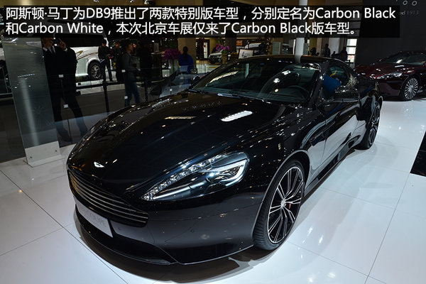 在本屆車展上,阿斯頓·馬丁帶來了一款DB9Carbon Black車型,其實這款特別版還有一款白色車身的車型Carbon Black,但本屆車展只有這款黑色外觀,下面我們就來看看這款特別版有那些特別之處。