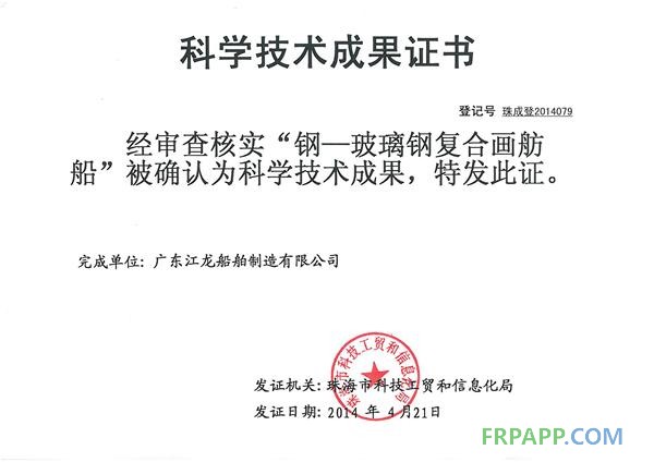 近日,廣東江龍船舶制造有限公司建造的鋼-玻璃鋼復合畫舫船被確認為科學技術成果,是繼69英尺豪華游艇后又一款產品被確認為科學技術成果。