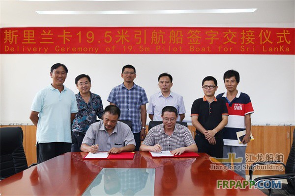 7月16日,江龍船舶為斯里蘭卡客戶建造的19.5m引航船順利交船,斯里蘭卡客戶中方代表與江龍船舶領導出席了交船儀式。