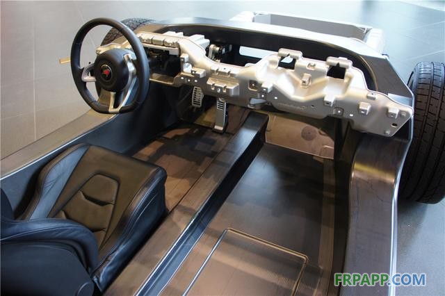 在組成整個(gè)駕駛艙的碳纖維材料中包含兩種碳纖維材料,一個(gè)是雙軸向碳纖維材料,另一個(gè)是三軸向碳纖維材料,若干塊材料被疊加到一起,直到組成駕駛艙的雛形,從中再加上樹脂粘合劑,最后將整個(gè)坯料送入下一道工序,通過高壓將樹脂注入到模具中,最終打造出一個(gè)完整的碳纖維單體駕駛艙。隨后,車輛的其它部件都要要以它為依托進(jìn)行裝配,例如,縱梁、動力系統(tǒng)、懸架結(jié)構(gòu)等,對于邁凱倫而言,整個(gè)車都是以駕駛艙開始的,單體車架MonoCell是12C和12C Spider的骨架,與傳統(tǒng)的鋁或鋼結(jié)構(gòu)相比,有明顯的優(yōu)點(diǎn)。從頭設(shè)計(jì)以支持兩款車型,其重量只有75公斤,是兩款車極其輕身的主要原因之一,其單體構(gòu)造不僅提供巨大強(qiáng)度和完整性,而且提供異乎尋常的尺寸精度。每個(gè)單體車架MonoCell的建造公差均低于1毫米,因此每輛車的建造、裝配和完工始終遵循相同的典范標(biāo)準(zhǔn)。