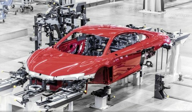 車身金屬部分是鑄鋁擠壓成型,分為前、中、后三個部分,工人們把他們拼接在一起成為車身的基礎。然后機器人負責冷接工藝——整個 AFS 包含 270 半鏤空的穿孔柳釘、270 個抽芯柳釘、270 個自攻螺釘,所有焊縫加起來長達 89 米。最后車身再配上座艙和車頂就基本成型。