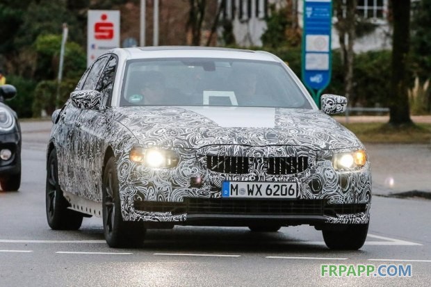 從諜照上看,新一代寶馬3系與新一代寶馬5系的設計風格相近,寶馬似乎也在走奔馳C級和E級的“俄羅斯套娃”路線。新車前臉部分依舊保持了我們熟悉的雙腎進氣格柵,但大燈造型有小幅調整。