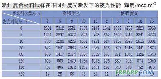 將夜光劑添加到環氧樹脂中,采用多層復合拉擠成型制得了夜光EP/GF復合材料。通過對復合材料夜光性能、耐水發光性能及力學性能的研究,結果表明:復合材料夜光劑的用量在10phr左右、表層厚度為0.10mm時,具有長余輝、耐水沖洗、黑夜白天交替的發光性能。