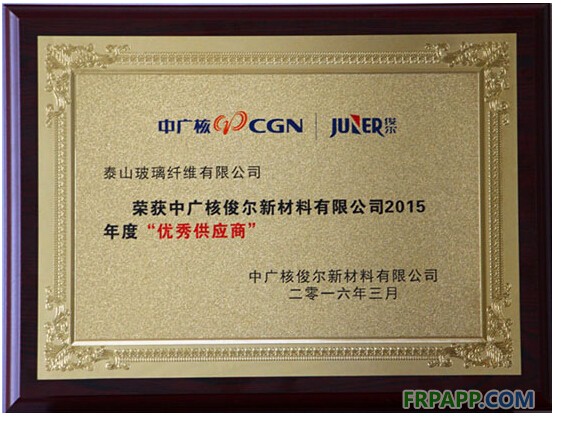泰山玻纖蟬聯“中廣核俊爾優秀供應商”稱號