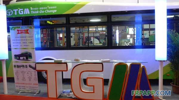 這是一種新型的高強度碳纖維復合材料車身,不僅具有輕量化,更具有高強度。這是山東泰汽電動車輛(集團)有限公司與韓國TGM公司展出的新款全新碳纖維結構電動客車。