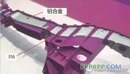 該技術已經在儀表板的支柱——管梁上實現實用化。由鋁合金和PA構成,利用共聚PA粘合劑粘合了兩種材料。戴姆勒在3款車型上采用。2013年德國戴姆勒在“梅賽德斯·奔馳A級”上首次采用,之后“梅賽德斯·奔馳B級”和“梅賽德斯·奔馳SLS級”也相繼配備。使用的PA為玻璃纖維強化PA6。重量最大減輕2成。