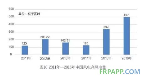 從2010 年至2016 年,全國累計棄風電量高達1495 億千瓦時,比三峽和葛洲壩兩座水電站的2016 年全年發電量之和(1112.26 億千瓦時)還多出382.74 億千瓦時。相應的電費損失超過了800 億元,相當于多燃燒標煤超過4700 萬噸,多排放二氧化碳1.2 億噸,其他有害物質,如二氧化硫、煙塵、氮氧化物共計50 萬噸。