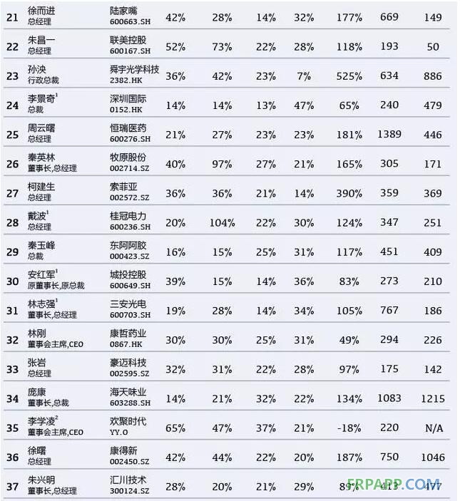 50位最佳CEO所管理的上市公司中,有37家在內地上市,8家在香港上市,5家在美國上市,平均市值1390億元。而他們最近三年從上市公司領取的總薪酬的平均值為1290萬元。