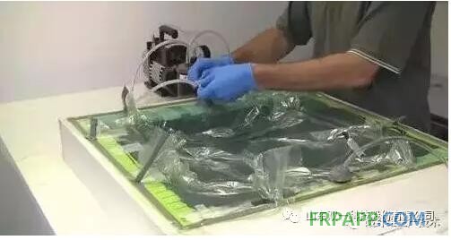 簡稱VIP,在模具上鋪“干”碳纖維復(fù)合材料,然后鋪真空袋,并抽出體系中的真空,在模具腔中形成一個負壓,利用真空產(chǎn)生的壓力把不飽和樹脂通過預(yù)鋪的管路壓入纖維層中,讓樹脂浸潤增強材料,最后充滿整個模具,制品固化后,揭去真空袋材料,從模具上得到所需的制品。該工藝在1950年就出現(xiàn)了專利記錄,但在近幾年才得到發(fā)展。在真空環(huán)境下樹脂浸潤碳纖,制品中產(chǎn)生的氣泡極少,制品的強度更高、質(zhì)量更輕,產(chǎn)品質(zhì)量比較穩(wěn)定,而且降低了樹脂的損耗,僅用一面模具就可以得到兩面光滑平整的制品,能較好地控制產(chǎn)品厚度。一般應(yīng)用于船艇工業(yè)中的方向舵、雷達屏蔽罩,風(fēng)電能源中的葉片、機艙罩,汽車工業(yè)中的各類車頂、擋風(fēng)板、車廂等。