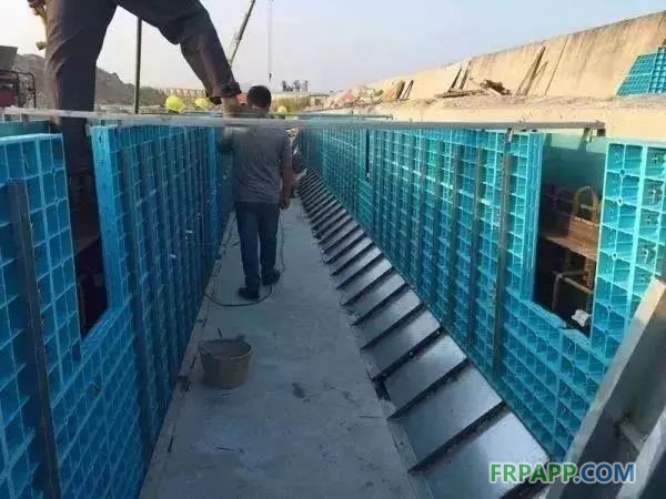 在建造人工島環島躍浪溝時,由廣州路億公路工程有限公司研發的新型高分子塑料模板就發揮了相當大的作用。據悉,該塑料模板采用熱塑長纖維增強的高分子復合材料制成,一平米塑模重量約10kg,僅為鋼模的七分之一,同時還具有耐磨損、防腐蝕、強度高等特點。