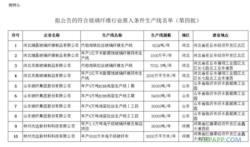 符合玻璃纖維行業準入條件的生產線名單(第四批)公示