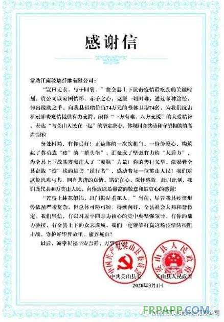 疫情當(dāng)前,捐贈(zèng)物資防控疫情,是企業(yè)義不容辭的責(zé)任,同心同向、共抗疫情,用實(shí)際行動(dòng)為疫情防控提供援助,踐行社會(huì)責(zé)任和企業(yè)擔(dān)當(dāng),在無(wú)情的疫情面前,希望能傳遞愛(ài)心和暖意,江南玻纖希望與社會(huì)各界人士共同撐起新冠病毒防控的堅(jiān)實(shí)堡壘。