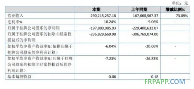 4月24日消息,恒神股份公布的2019年年度報告顯示,2019年營業收入為290,215,257.18元,較上年同期增長73.09%;歸屬于掛牌公司股東的凈利潤為-197,880,985.93元,較上年同期虧損程度有所減少;基本每股收益為-0.06元,上年同期為-0.18元。