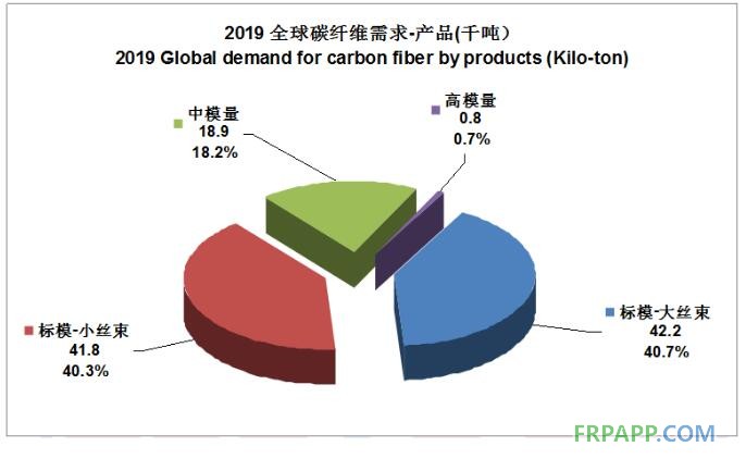 2019年的全球碳纖維需求數據,是根據國際上公認的增長率12%這個數據計算而來的,總需求量為103,700噸,這其中,中國的需求數據37,840噸是精準的,占了36.4%。假如國際需求量數字太小,中國的占比就會更大,這顯然有悖于常識。畢竟我們很清楚,歐美日本是碳纖維需求的大國。