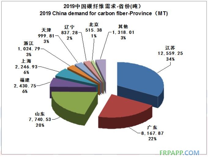 上千噸用量的省份有6家,江蘇由于風電碳纖維的消耗,把長期排名第一的廣東省推到第二名。江蘇省是中國歷史上首次突破萬噸規模的省份。