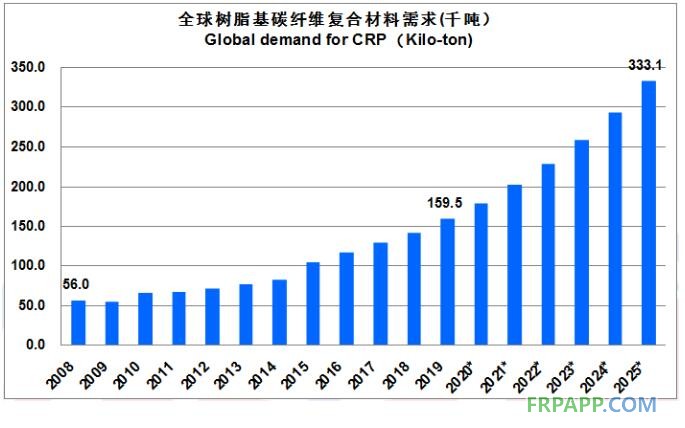 樹脂基碳纖維復合材料的需求量,根據纖維在復材中65%的比例計算的,建立一個規模概念。