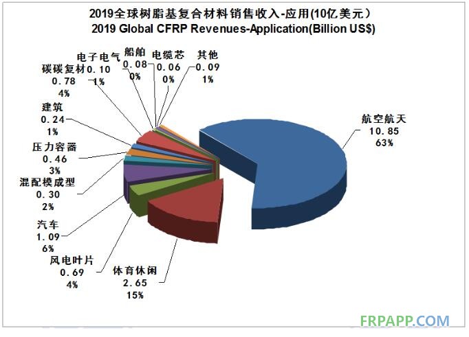2019 年,我們對體育器材的復材收入有較大幅度的調整,之前的年份,我們只統計到預浸料,今年,如同航空航天,我們統計到了構件。所以,體育器材的收入大幅度提升到26.5億美元。