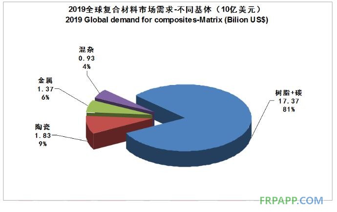 2019年,整個樹脂基材料中,熱塑復合材料占了大約25%的比例,金額約為43.4億美元。其中,絕大部分為非連續增強塑料,連續碳纖維熱塑材料,我們估計市場份額為2億美元左右。
