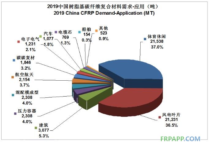 2019年,中國碳纖維復合材料的總量為58,215噸。給行業一個大致的概念。