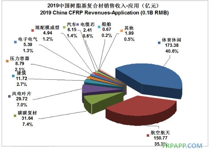 如前所述,我們調整了體育器材的統計方法,從之前只計算預浸料,到今年統計構件的收入。所以,體育器材2019年的復材收入為173.38億元。