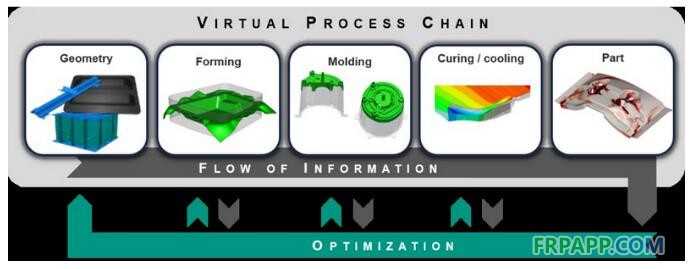 為了充分利用SMC輕量化解決方案的潛力,采用合適的仿真設計和優化方法是必不可少的。與此同時,制造過程會顯著影響產品中纖維取向等結構,進而影響產品的性能。因此,有效的仿真設計還需要一個對實際制造過程的數字化映射系統(digital twin),也需要一個虛擬的工藝過程鏈,這可以為后續的進一步仿真方法,如翹曲變形仿真、結構仿真等保留制造過程對于產品性能的影響。不過,之前的學術模型過于復雜,導致無法生成有效的材料卡片用于工業化產品的結構仿真當中。而且,他們還沒有足夠成熟的技術來清晰描繪不同的工藝制造過程來滿足最小精度和最大數值效率的要求。