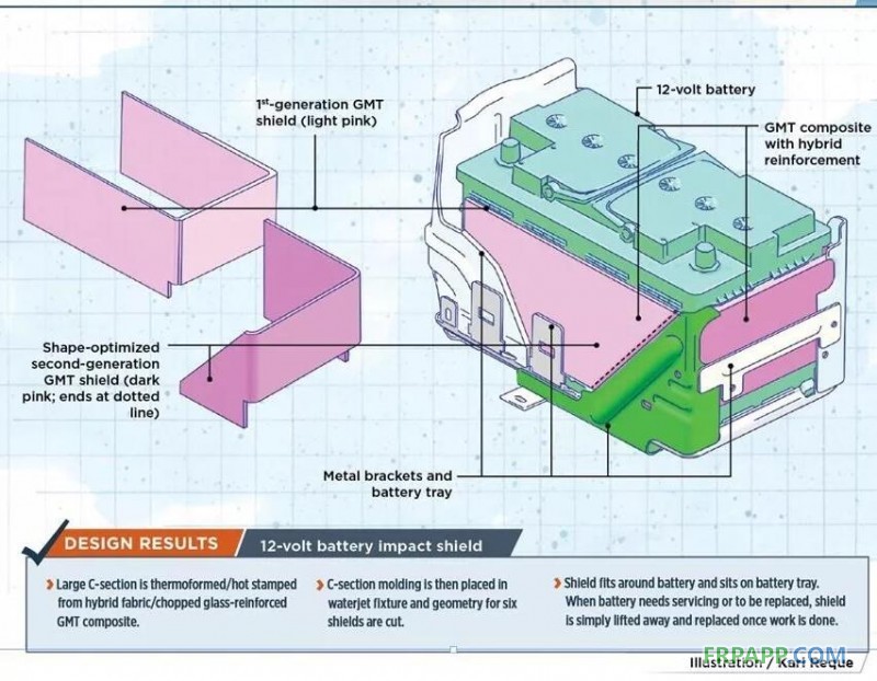 由于沒有時間重新規劃,研究人員轉向采用不同的技術——玻璃纖維氈熱塑性復合材料(GMT)。