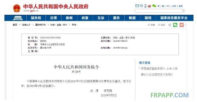 其實2017年修訂的中小企業促進法已有相關規定,其中第五十三條明確寫著:國家機關、事業單位和大型企業不得違約拖欠中小企業的貨物、工程、服務款項。