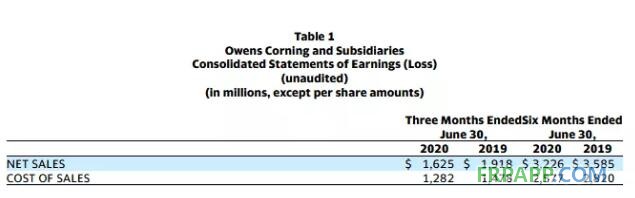 2020年第二季度歸屬歐文斯科寧凈利潤為9600萬美元,而2019年同期為1.38億美元。第二季度調整后的息稅前利潤為1.67億美元,而2019年同期為2.31億美元。