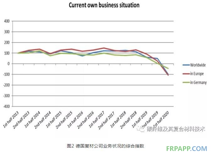 但是,不僅公司對行業總體業務狀況做出了不利的評估,德國復合材料公司還表示,他們對自己的狀況也持悲觀態度(見圖2)。盡管緊張局勢正在緩和如汽車工業復蘇,但許多公司仍然充滿不確定性。總的來說,各種各樣的機會和措施來刺激工業和經濟,但似乎它們尚未產生理想的積極經濟影響。