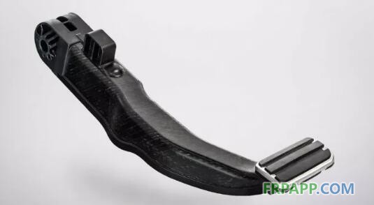 連續(xù)纖維增強熱塑性復合材料一個杰出的應用案例,是來自嵌有Tepex dynalite材料的全塑料剎車踏板,它的重量僅有傳統(tǒng)鋼制踏板的一半左右,可利用成本效益極佳的一次成型工藝進行大規(guī)模制造,此外,其內置Tepex嵌片的多軸纖維層結構能夠滿足較高的負載要求。