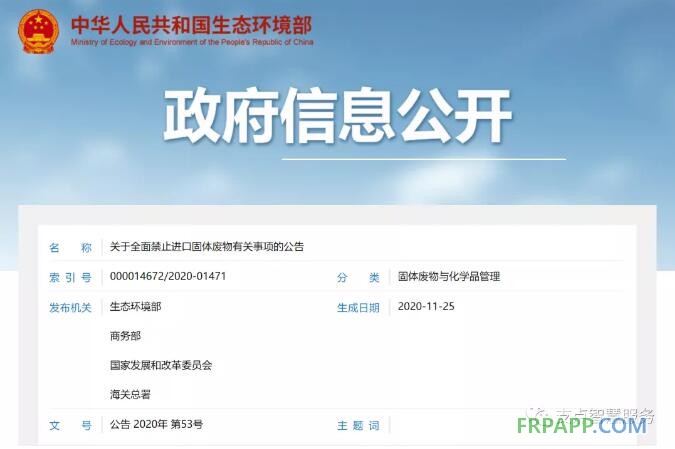 關于全面禁止進口固體廢物有關事項的公告