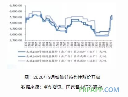 再觀價格端,9月份以來,玻纖趨勢性漲價開啟且漸超預(yù)期。