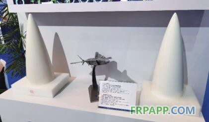 上海玻璃鋼研究院對其自主研發的氮化硅增程減阻頭罩和多孔氮氧化物夾層結構天線罩進行了展示。