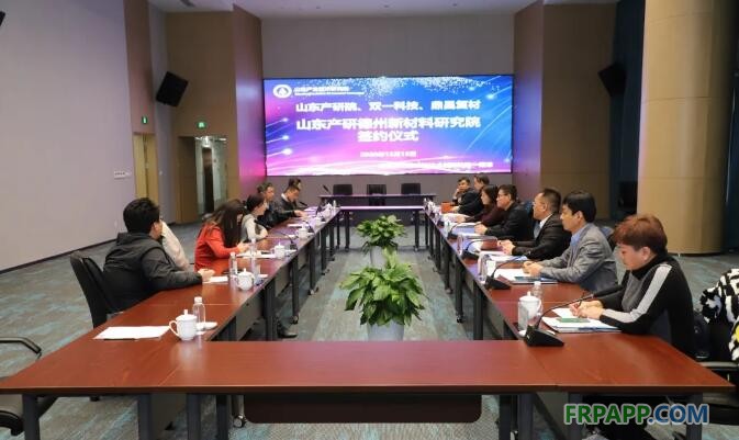 12月16日,山東產研院與山東雙一科技股份有限公司、山東鼎昌復合材料有限公司正式簽署協議共同投資成立山東產研德州新材料研究院有限公司,并簽署復合材料海洋浮體項目合作意向書。