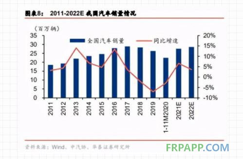 預計我國每年車頂氈需求約 2.5 萬噸,全球約 8 萬噸。根據中汽協,2020 年 1~11 月汽 車產量、銷量分別為 2178 萬輛、2247 萬輛,分別同比-2.7%、-2.9%,降幅持續收窄, 11 月單月產量、銷量分別為 278、277 萬輛,分別同比增長 8.1%、12.6%,自 4 月以來連續 8 個月正增長。從中周期來講,汽車需求經過了 2018~2020 連續三年的下跌之后, 2021~2022 年有望迎來上升周期。根據華泰汽車組 2020 年 11 月 17 日報告《蓬勃復蘇, 變革求新》預測,2020~2022 年國內汽車銷量分別為 2595、2765、2864 萬輛,同比分別 -1.4%、+6.6%、+3.6%。根據調研,單車車頂面積約 3 平方米,則需使用短切氈約 6 平米(上下雙層使用),按平均克重為 150 克/平方米來看,單車車頂使用短切氈約 900 克, 則我國 2020~2022 年車頂氈需求分別為 2.3/2.5/2.6 萬噸,全球來看,每年汽車銷量在 9000 萬輛左右,則對于全球車頂氈需求約 8 萬噸。
