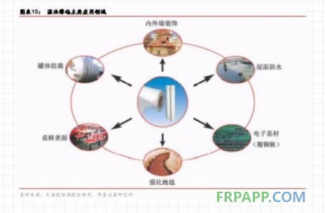 濕法薄氈可用作玻璃鋼貼面材料,預計 2019 年我國需求 6497 萬平。玻纖濕法氈具有很大的孔隙率,能吸附大量樹脂,用于玻璃鋼制品表面時,能形成無裂縫、耐化學腐蝕的 富樹脂層,提高制品的光潔度,保護內部的增強材料層,防止內部纖維暴露;同時可防止玻璃管道和罐體中的液體在受壓時滲漏。產品主要用作擠拉成型玻璃鋼門窗、冷卻塔和玻璃鋼貯罐等。
