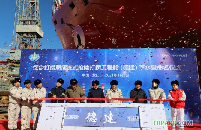 2021年1月9日,中集來福士為交通運輸部煙臺打撈局建造的插樁式搶險打撈工程船在龍口廠區舉行下水暨命名儀式。該船命名為“德建”號,將為我國北方近海海域快速應急打撈和風電安裝再添重器。
