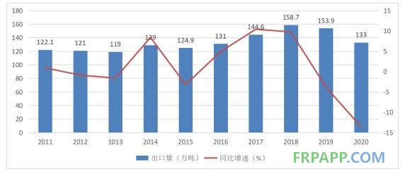 玻纖增強熱塑性復合材料制品:2020年全國玻纖增強熱塑性復合材料制品總產量約為209萬噸,同比下降約2.79%。汽車工業受疫情影響,全年產量同比下降2%,尤其是乘用車產量下降6.5%,對短玻纖增強熱塑性復合材料制品產量下滑造成較大影響。而長玻纖、連續玻纖增強熱塑性復合材料制品生產工藝日趨成熟,其性能優勢與市場潛力正在被越來越多的人所了解,其在物流運輸、貨運車輛、建筑、現代農牧養殖等領域中正得到越來越多的應用。