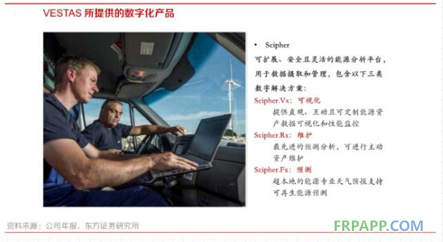 數字化形成技術前驅,加快能源信息化革命和應用。公司 2018 年收購 Utopus Insights,開始能源行業數字化轉型,引入先進的能源分析平臺 Scipher,為客戶提供跨能源的分析應用程序套件,支持可再生能源資產和能源系統的數字化,并解決諸如預測性維護等挑戰,提供性能分析可視化(Scipher.Vx)、基于預測的能源生產(Scipher.Fx)和高級預測性維護(Scipher.Rx)。2019 年公司宣布澳大利亞成為第一個利用 Scipher.Fx 風能預測產品的國家,該解決方案與澳大利亞可再生能源局合作,改進澳大利亞風能預報系統,并將天氣預報的精度從 16 km2 提高到 1 km2,這也為能源數字化提供了應用案例。
