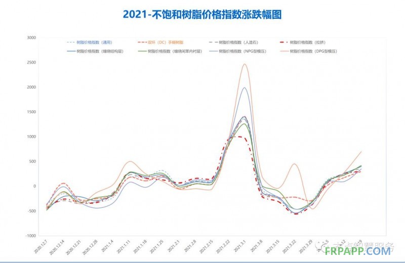 鄰苯通用型樹脂320,雙環(DC)手糊樹脂300,人造石/石英石樹脂360,拉擠樹脂300,纏繞結構層樹脂400,纏繞間苯內襯樹脂420,NPG型模壓樹脂350,DPG型模壓樹脂700。原材料市場繼續震蕩上行,樹脂成本繼續上升,部分品種加速上升,市場售價繼續上調300元--500元。