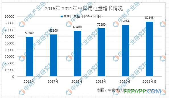 電力是關(guān)系國計(jì)民生的基礎(chǔ)產(chǎn)業(yè),電力供應(yīng)和安全事關(guān)國家安全戰(zhàn)略,事關(guān)經(jīng)濟(jì)社會(huì)發(fā)展全局。隨著我國經(jīng)濟(jì)運(yùn)行規(guī)模的不斷擴(kuò)大,全社會(huì)用電量將繼續(xù)增加。數(shù)據(jù)顯示,中國用電的市場(chǎng)規(guī)模從2016年59700億kW·h增加到2020年的77000億kW·h,年均復(fù)合增長率為6.59%,據(jù)預(yù)測(cè),2021年中國用電量達(dá)到82143億kW·h。