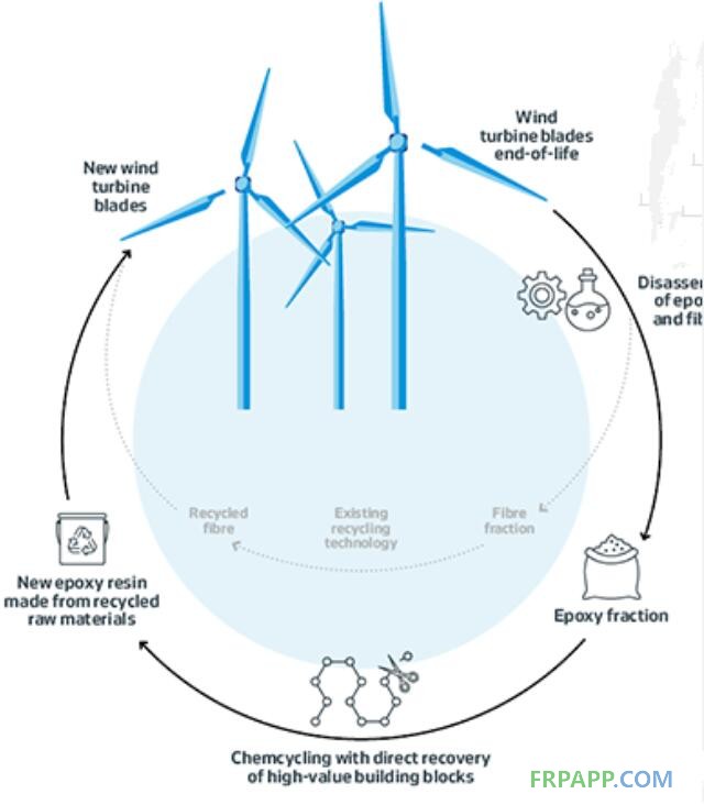 該計(jì)劃的依托技術(shù)由創(chuàng)新團(tuán)隊(duì)DreamWind開(kāi)發(fā),技術(shù)包括兩個(gè)步驟。首先,將熱固性復(fù)合材料分解為纖維和環(huán)氧樹(shù)脂。其次,通過(guò)新的化學(xué)循環(huán)工藝,將環(huán)氧樹(shù)脂進(jìn)一步分解成類似于原料的基本成分,重新引入到新的風(fēng)機(jī)葉片的制造中,從而實(shí)現(xiàn)環(huán)氧樹(shù)脂的循環(huán)利用。