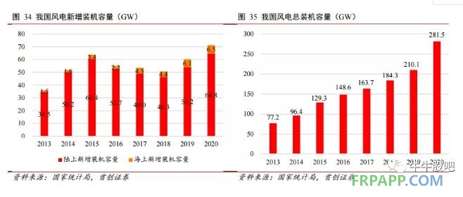 玻纖下游應用領域較大,其需求量 與宏觀經濟密切相關。風電來看,2020 年受益陸上風電搶裝潮,全年風電新增裝機容量 70.8GW。2021 年海上風電即將放量,全年新增風電裝機容量有望達 49GW(陸上40GW+ 海上 9GW),相較去年會有所下降。但整個十四五期間來看,風電需求仍有望維持穩定增長,預計年復合增速將達 5%。汽車來看,2021 年我上半年我國乘用車銷量同比實現小幅增長。整體來看全球經濟在疫情緩和背景下,處于整體復蘇狀態,預計下半年玻纖需求有望保持穩定。